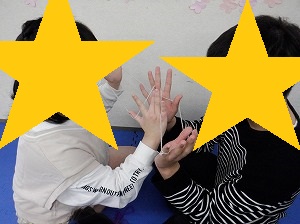 ゆっくりと数を数えながら、手を遠くの方へ伸ばします。