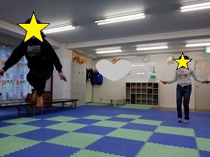 大好きなトンネルをくぐったら、跳び箱に登って、回転しながらジャンプ!!