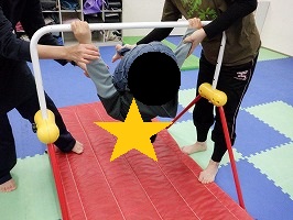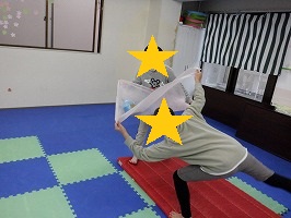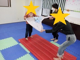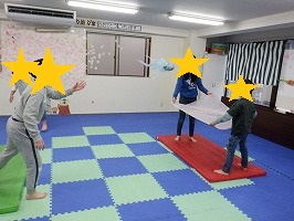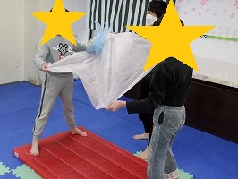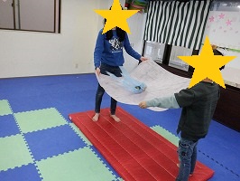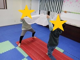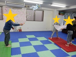 お友だちが投げたお星さまを布を使ってキャッチできるかな?