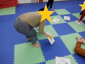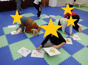 ヒヨコチーム対ニワトリチームに分かれて行いました。ひっくり返すとすぐにまたひっくり返され、なかなかハードな戦いです(>_<)