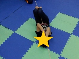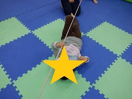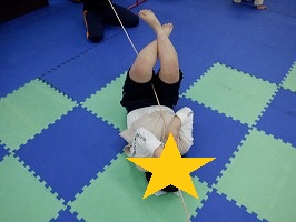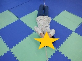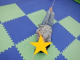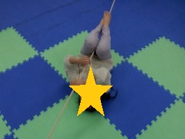 両手で紐をしっかりと掴んで腕の力を使って進もう!