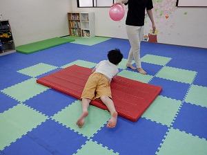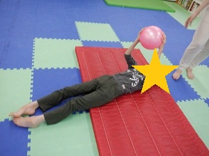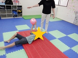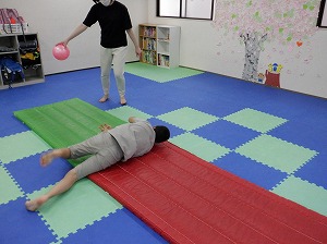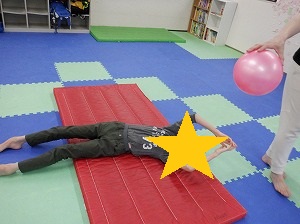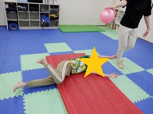 先生が持っているボールを追いかけるようにコロコロ転がります。