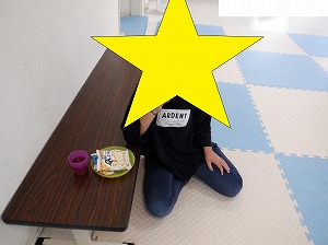 登所順にソーシャルディスタンスを守って「いただきます!」