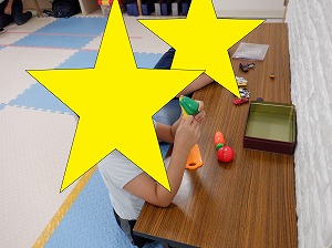 ままごとセットで野菜を上手にトントンしたり、のんびり遊ぶお友だちが多かったです(^-^)