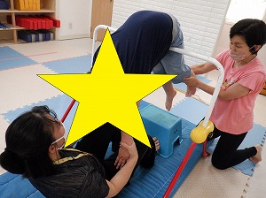 指先は体の方に向けて、床をしっかり押しましょう☆