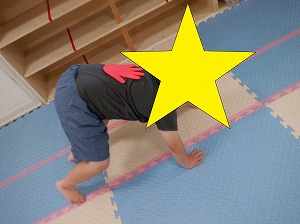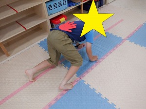 背中に「手形」を乗せたらクマさん歩きで出発!!