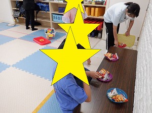 コロナ感染予防の為に登所した順におやつを食べます✨