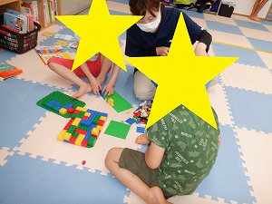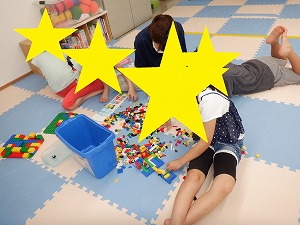 自由遊びでは、バランスボールで遊んだりレゴブロックで遊びました(^_-)-☆