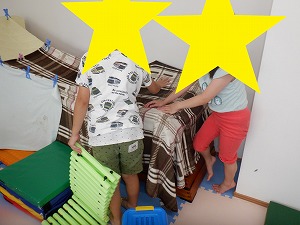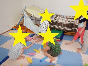 午後はお家を作ったりぽっくりで遊んだりとゆっくり過ごしました!(^^)!