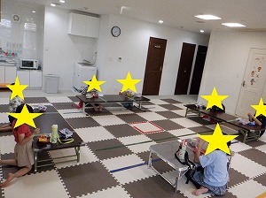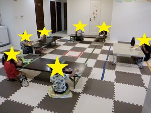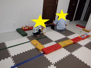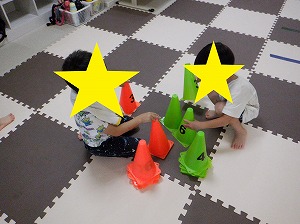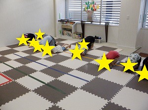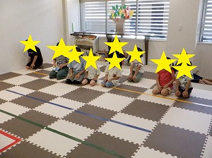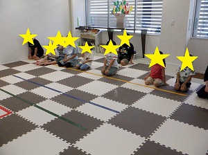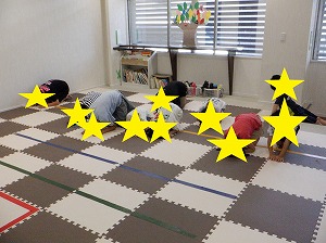 みんなが揃ったら、お片付けをして運動遊びの時間です。