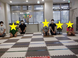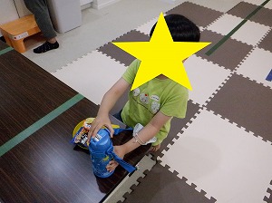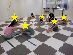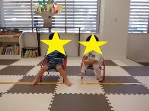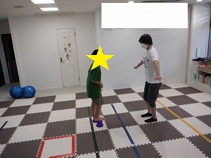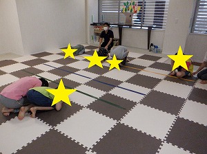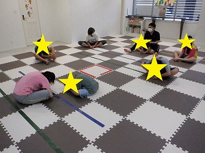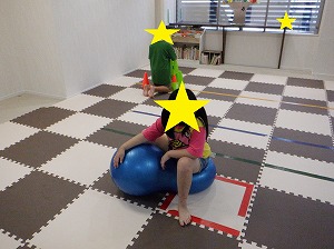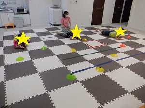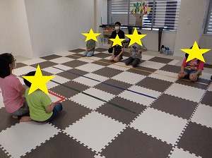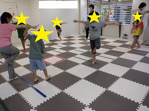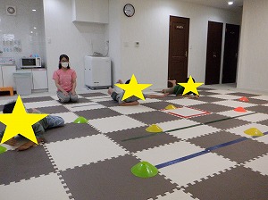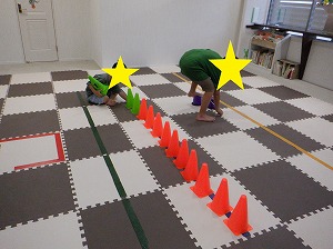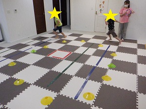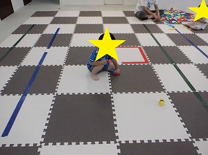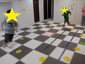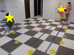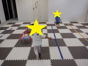 タンバリンの音をよく聞いて走ったり止まったりします。