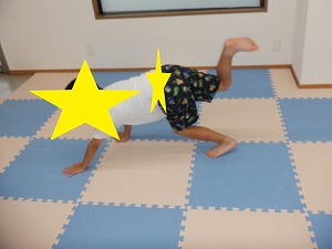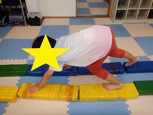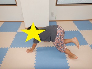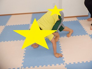 ケンケンクマさんでは、クマさんの格好で片足を上げながら進みます。