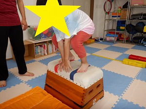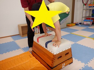 跳び乗るカエルさんでは、跳び箱の上にジャンプで乗り降りをします。