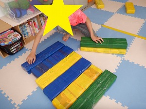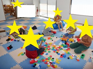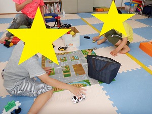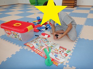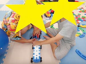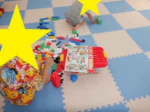 自由遊びの時間ではニューブロックやぬいぐるみやミニカーで遊びました。