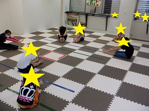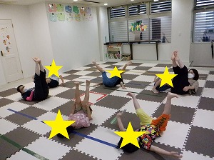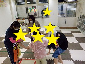 手を離さないように気を付けながらフープをお隣のお友だちに渡します。