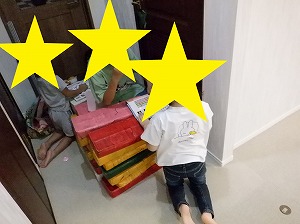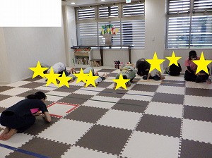 みんなが揃ったら、お片付けをして運動遊びの時間です。