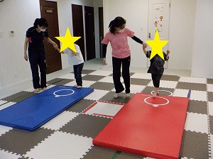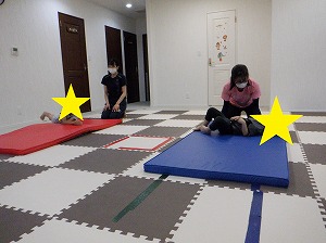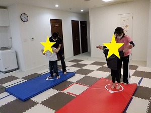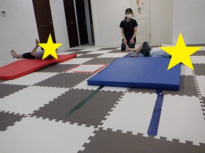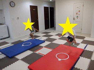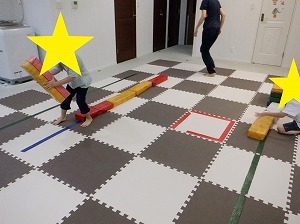 マットをお山にして、越えられるかチャレンジしてみよう!