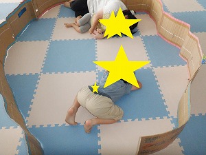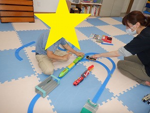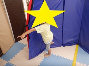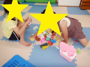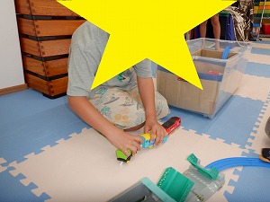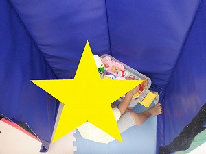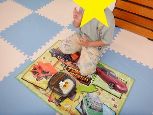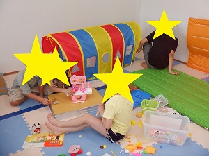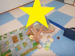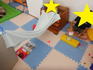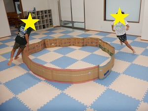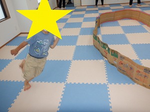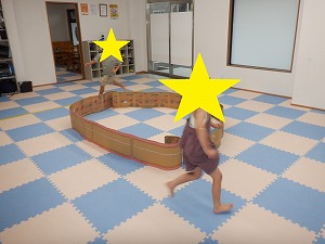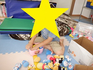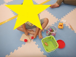 自由遊びの時間では、すみっコぐらしの人形で遊んだり、マットで囲いを作っておままごと遊びをして遊びました。