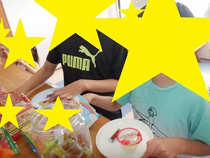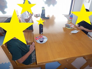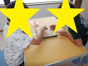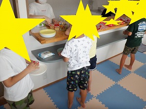 昼食まで、夏休みの宿題をしたり自由遊びをしていました。