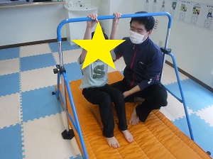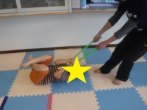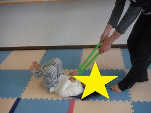 先生が引っ張って、お友だちは腕が伸びないように頑張ります!
