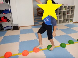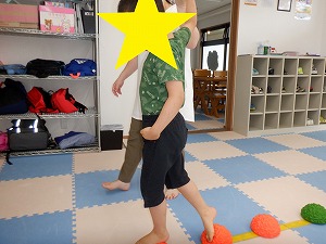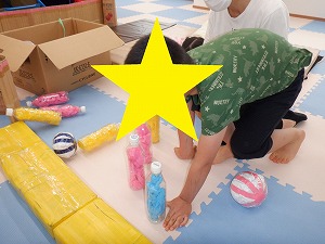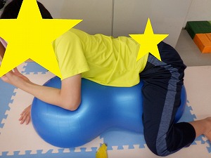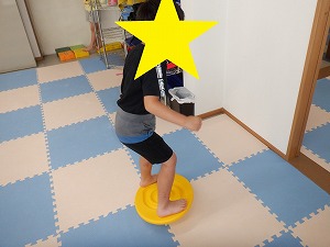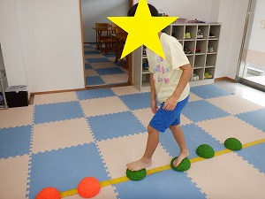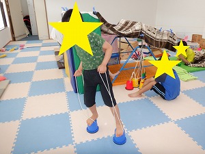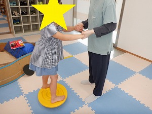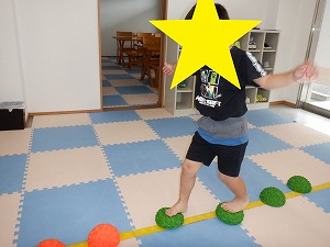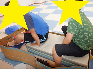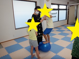 自由遊びでは、バランスボールでジャンプやバス、電車ごっこなどで遊びました。