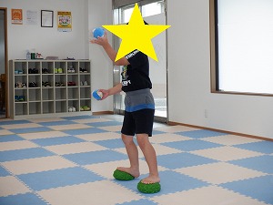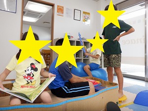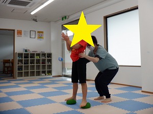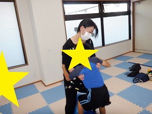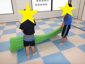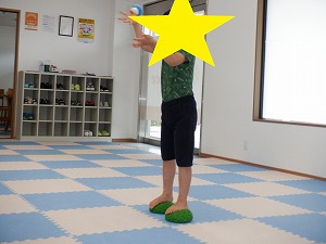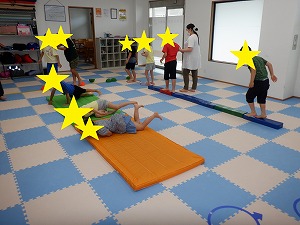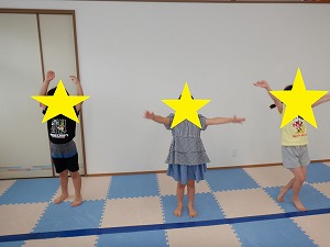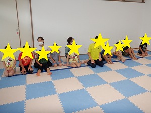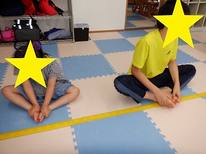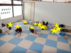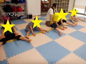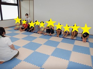 「吸って~はいて~」と伝えながら、動から静への切り替え練習です。
