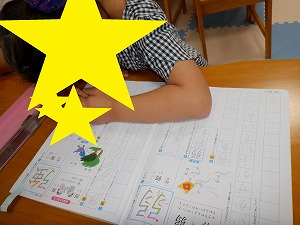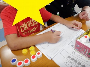 まだ計算が難しいお友達は、職員と一緒に取り組んでいます。