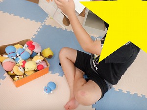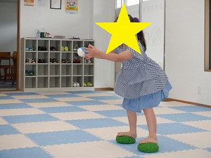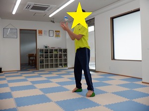 飛んでくるぬいぐるみを良く見てキャッチしました。