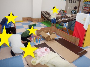 テントを作って、グランピングごっこなどをして遊びました。