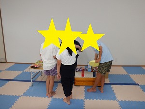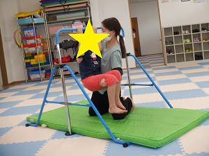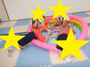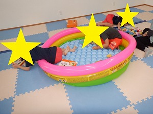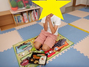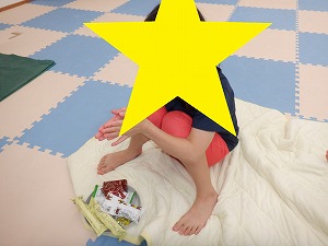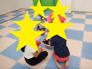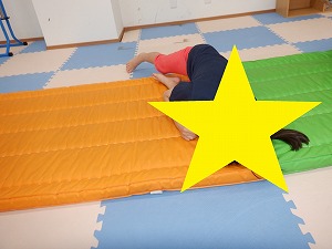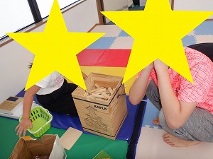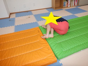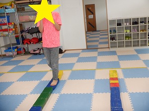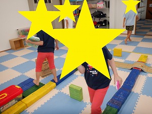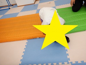 午後は折り紙をしたり、平均台で線路を作って電車ごっこをして遊びました。