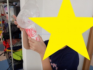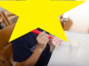 紙コップに色をぬりぬり、ストローを袋をつけて完成です(^_-)-☆