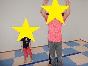 鉄棒をしっかりと握って体を鉄棒に引き付けて体を丸めます❣
