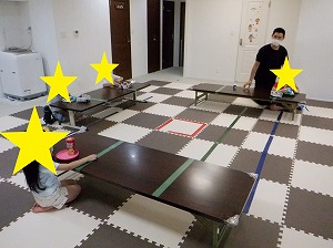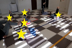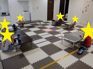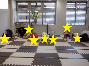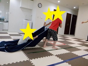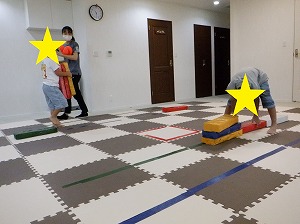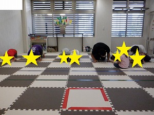 みんなが揃ったら、お片付けをして運動遊びの時間です。