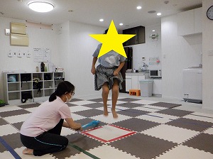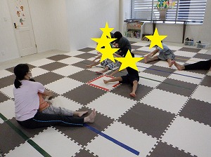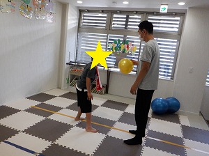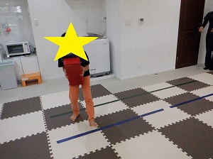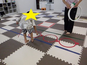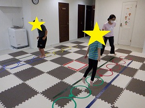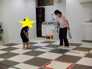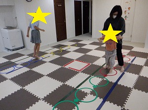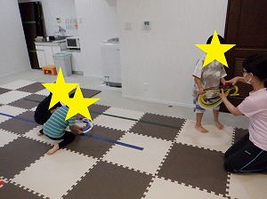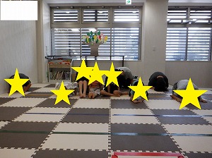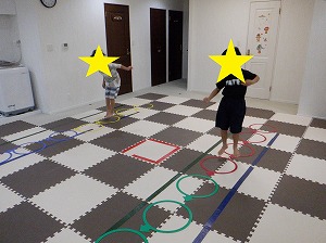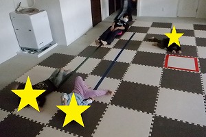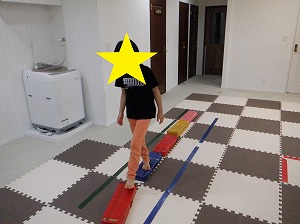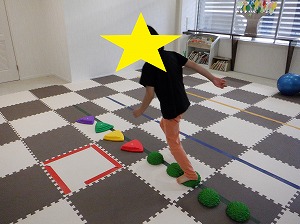 平均台やカメの甲羅の上を落ちないように歩いてみましょう!