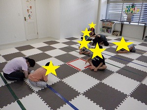 みんなが揃ったら、お片付けをして運動遊びの時間です。