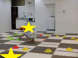 タンバリンの音が鳴っている時は、コーンの周りを走ります。