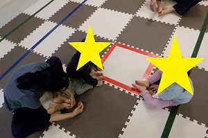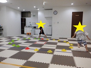 タンバリンの音が止まったら、ピタッと止まれるかな?