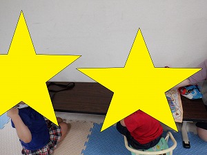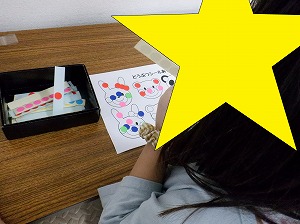 音の鳴る玩具で音楽を聞いたり・・・点つなぎや、塗り絵をしたり・・・