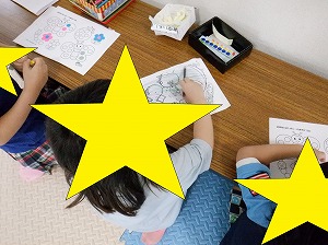 身支度や手洗い・うがい、消毒が終わったら、宿題をするお友だちもいました‼