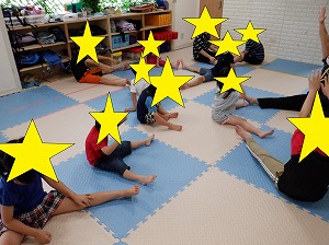 「1.2.3.4....10♪♪」掛け声に合わせてしっかり柔軟しましょう!!