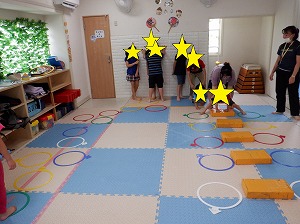 跳躍力、脚力、瞬発力⇒支持力、空間認知力、脚力を養う遊びです✨
