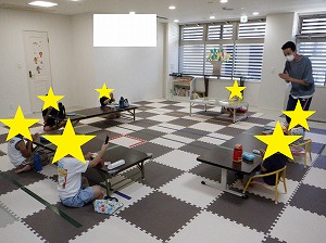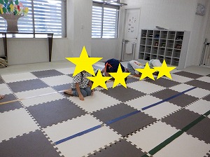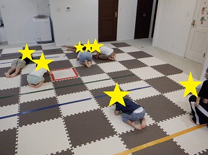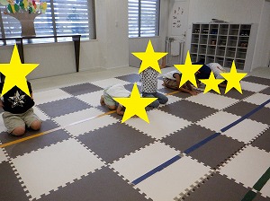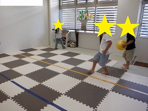 みんなが揃ったら、お片付けをして運動遊びの時間です。