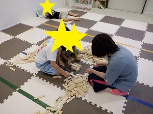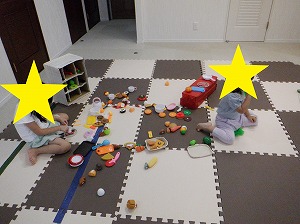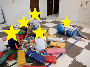 お片付けをして午後から来たお友だちと運動遊びの時間です。
