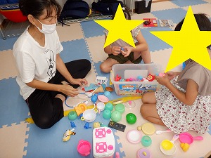 自由遊びはお家ごっこ、お勉強などをして過ごしました。