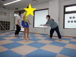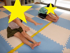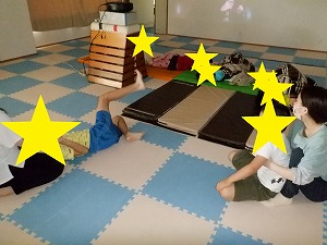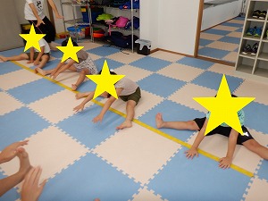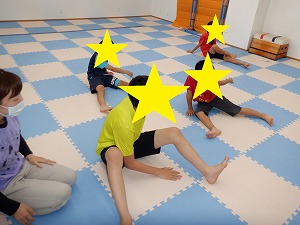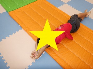 床に寝ころび、動から静への切り替え練習を頑張りました。
