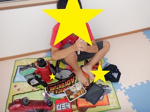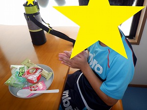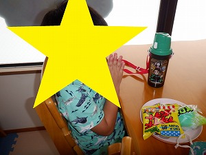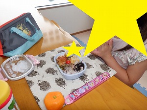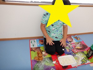 ピクニック気分でレジャーシートを敷いて食べる楽しみも夏休み中だけなので、夏休み最後までピクニック様式は続けていきます。