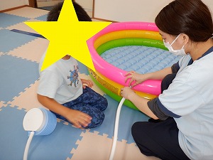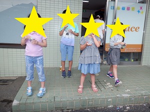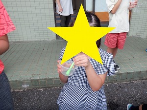 午後の集団遊びはお天気もよくなったので、シャボン玉遊びをしました。