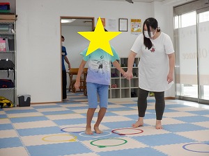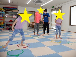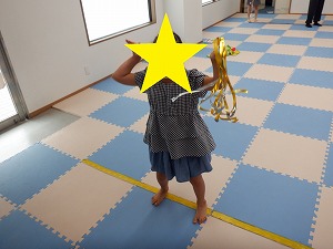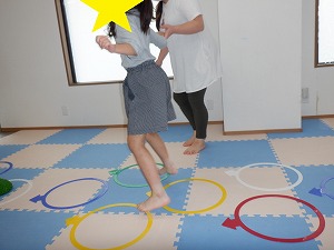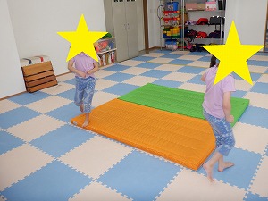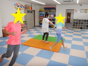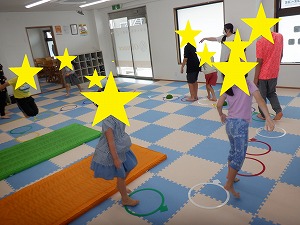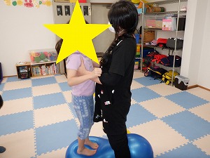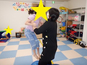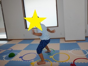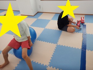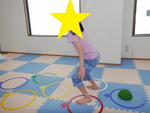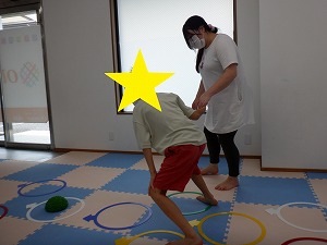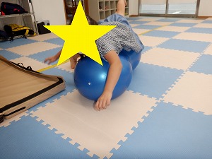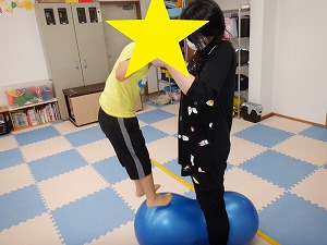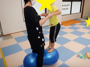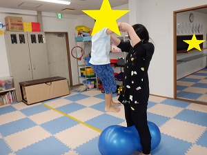 午前は順番にバランスボールで跳びはねたり、アスレチック遊びで身体を動かしてして遊びました。