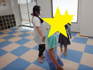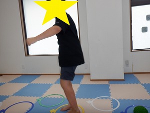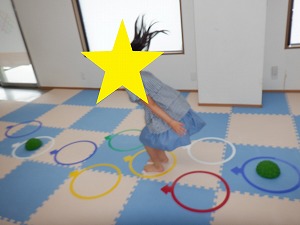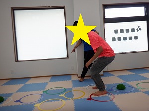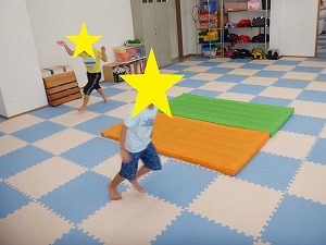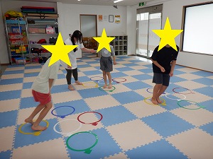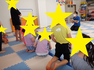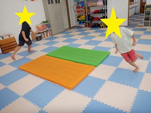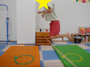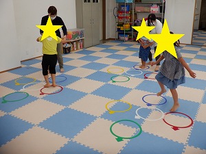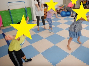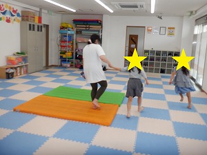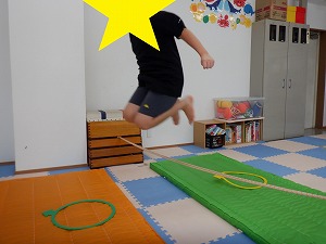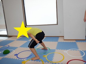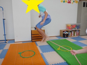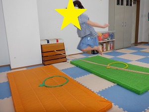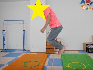 グーパージャンプは、グーはしゃがんで丸くなり、パーでは手足を大きく広げましょう。