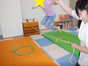 縄高跳びは縄に引っかからないよう、両足を揃えてジャンプしましょう。
